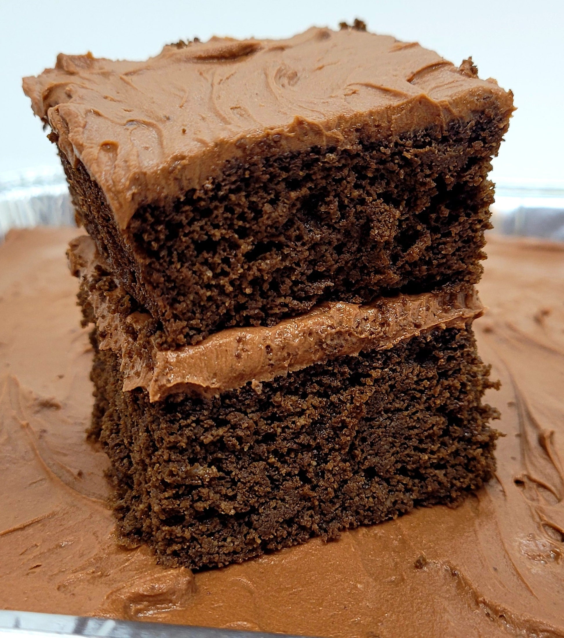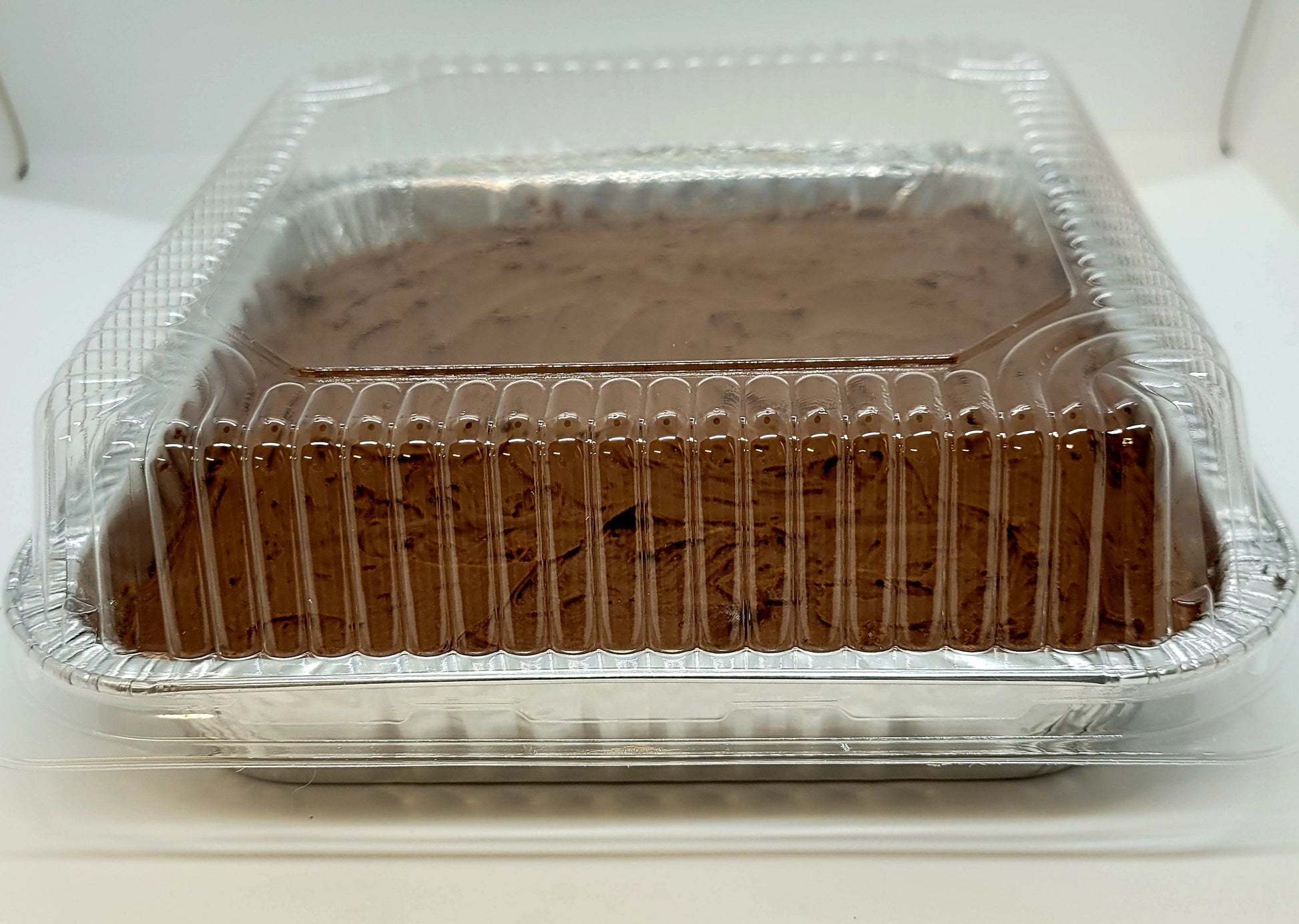 Sugar-Free, Gluten Free Chocolate Cake! Craving chocolate cake? Without the sugar rush, you won't believe how moist, rich, and chocolatey this cake is. Tastes like the real thing! 25% bigger than before. This is a one-layer cake with icing. The photo is two pieces on top of each other. Comes in an 8x8 pan with a lid. Shipped in a thermal wrap with an ice pack. Refrigerate upon arrival.