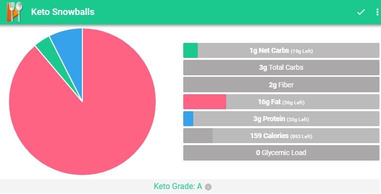 MACROS per cookie 159 calories, 1 Net Carbs, 3 Total Carbs, 16 grams fat, 3 grams protein