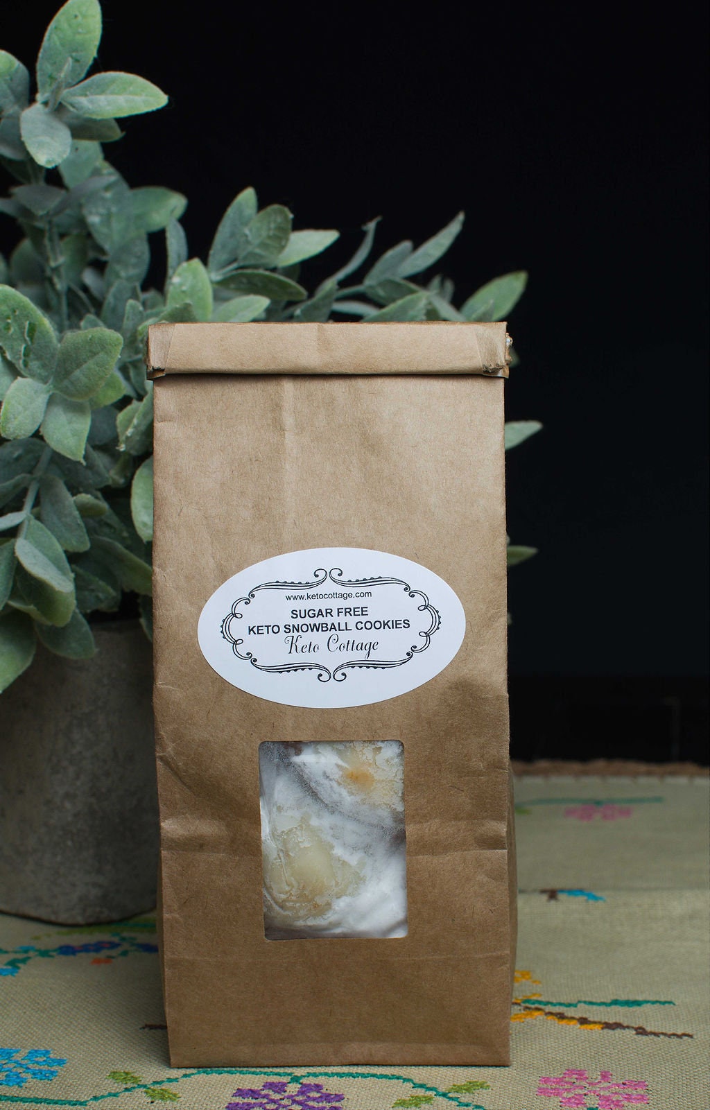 These Keto Pecan Snowball Cookies, covered with powdered Monkfruit sweetener, taste like toasted pecan heaven. They taste better than powdered donuts (without the guilt)! You won't be disappointed! Each batch is made to order with Almond Flour, Erythritol, Stevia, butter, toasted pecans, and pure vanilla extract. Each cookie weighs over 1 oz. Each coffee bag has 6 cookies and is sealed for freshness. Perfect for gift giving or your special treat!