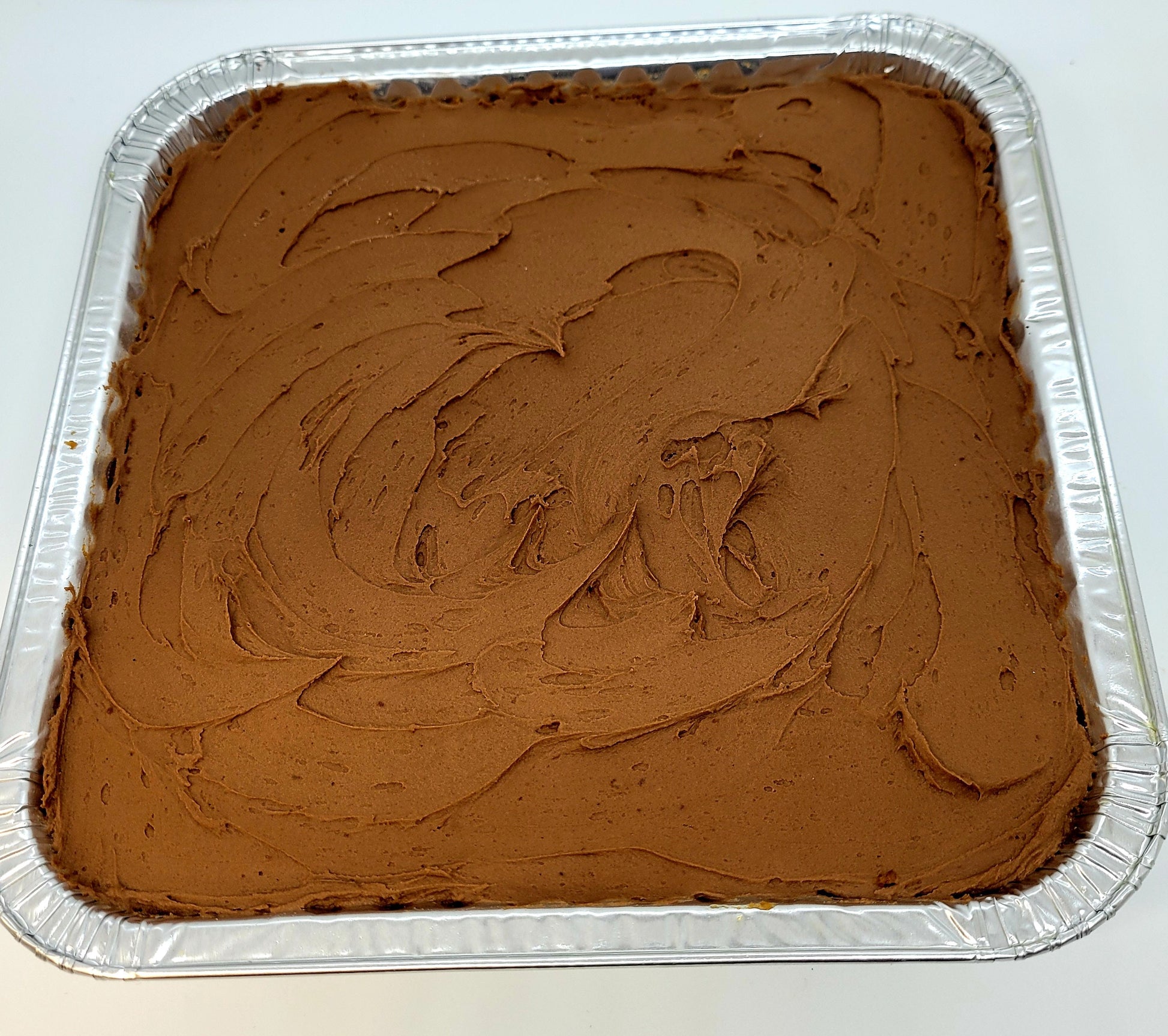 Sugar Free, Gluten Free Keto Vanilla Chocolate Buttercream Cake! Our newest cake makes a great birthday cake! Super-moist vanilla cake with rich, creamy chocolate buttercream icing! If you've tried our delicious Almond Cake, you will also love this one. It's the same moist cake without the almond extract, with a delightful, rich, and creamy sugar-free keto chocolate buttercream icing. Comes in an 8 x 8 pan covered with a plastic lid. Shipped with thermal packaging and an ice pack. Refrigerate upon arrival. Perfect for gift giving, holiday or birthday celebrating, or your own special treat! It's made with almond flour, coconut flour, monkfruit sweetener, eggs, Hershey's unsweetened cocoa, almond milk, heavy whipping cream, butter, avocado oil, vanilla extract, xanthan gum, and baking powder.